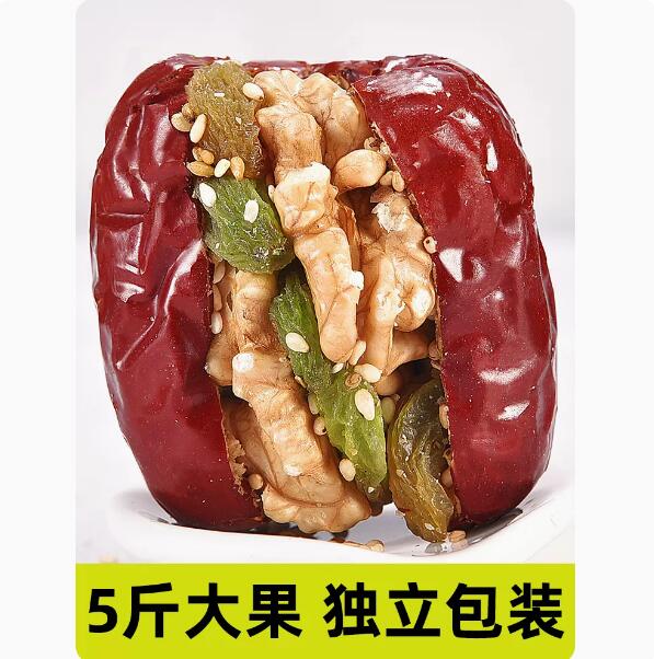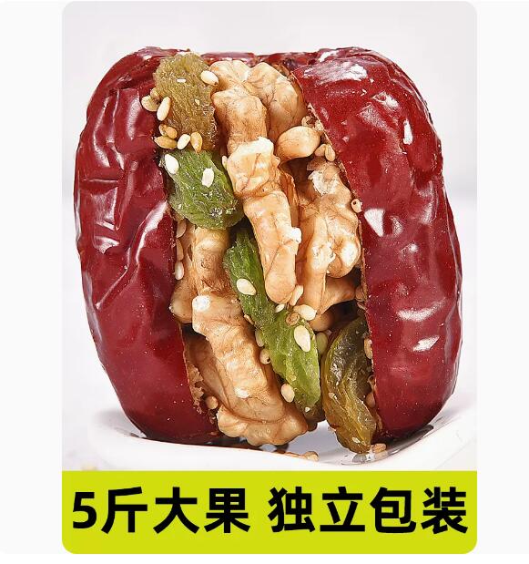 商品名称:大红枣夹核桃仁葡萄干 小包装孕妇小零食夹心新疆特产干果5斤礼盒