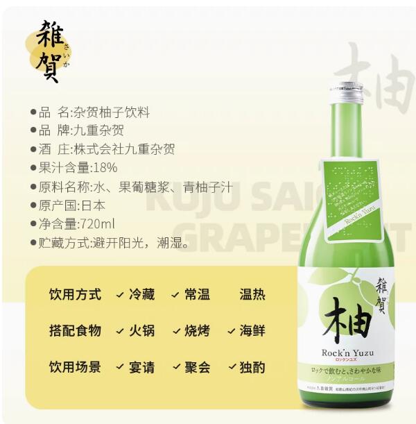 商品名称:柚子饮料720ml日本原装进口柚子汁果味饮料果汁无酒精利口酒